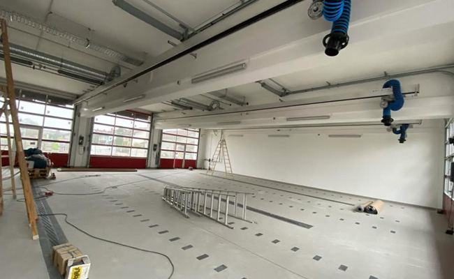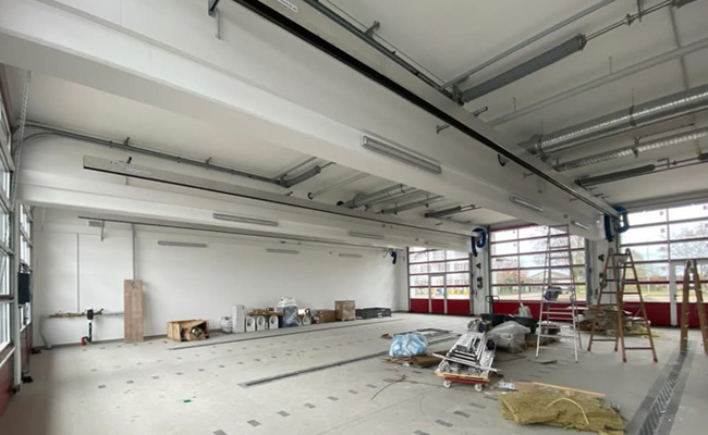 Besichtigen sie die neuen Fahrzeughallen, Schulungsräume und die Innenräume des Gerätehauses.